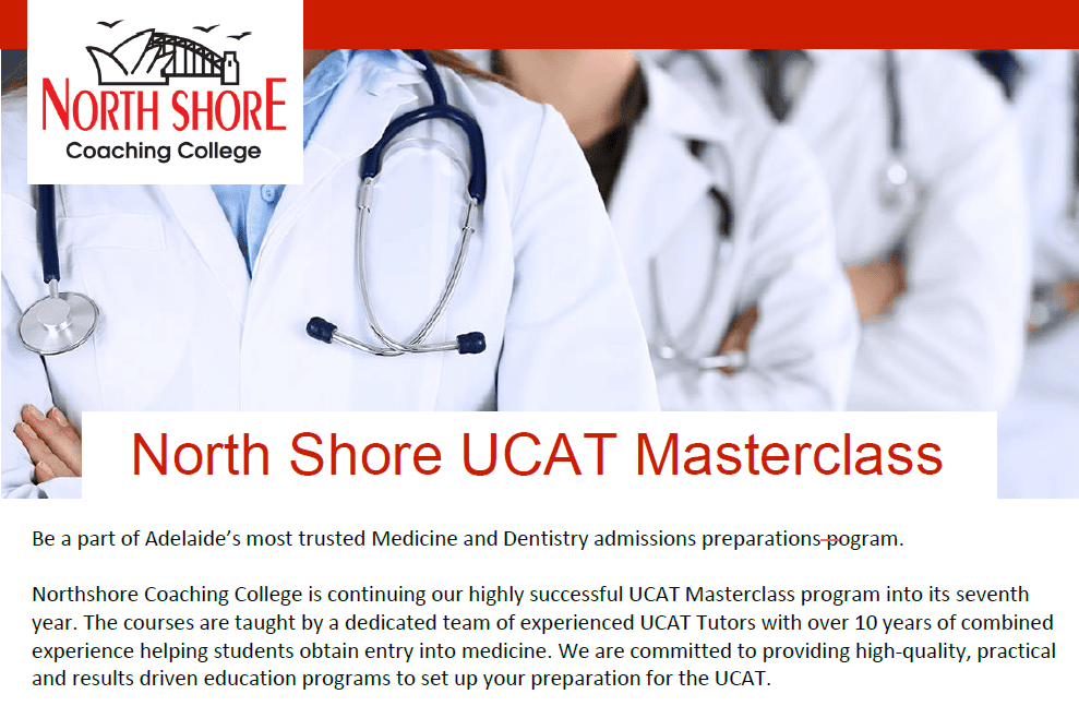 Northshore Coaching College is continuing our highly successful UCAT Masterclass program into its seventh year. The courses are taught by a dedicated team of experienced UCAT Tutors with over 10 years of combined experience helping students obtain entry into medicine. We are committed to providing high-quality, practical and results driven education programs to set up your preparation for the UCAT.