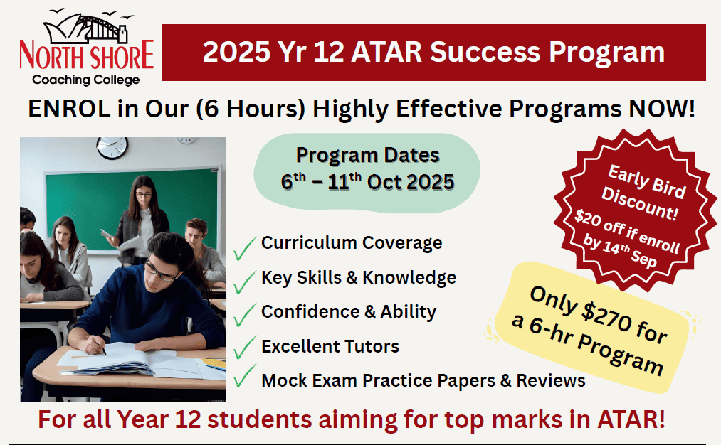 Home > News > Blog & Latest News > [WA] 2025 Yr 12 ATAR Accelerated Success Program[WA] 2025 Yr 12 ATAR Accelerated Success ProgramDownload the 2025 Y12 ATAR Accelerated Success Program Share:FacebookTweetPinLinkedIn