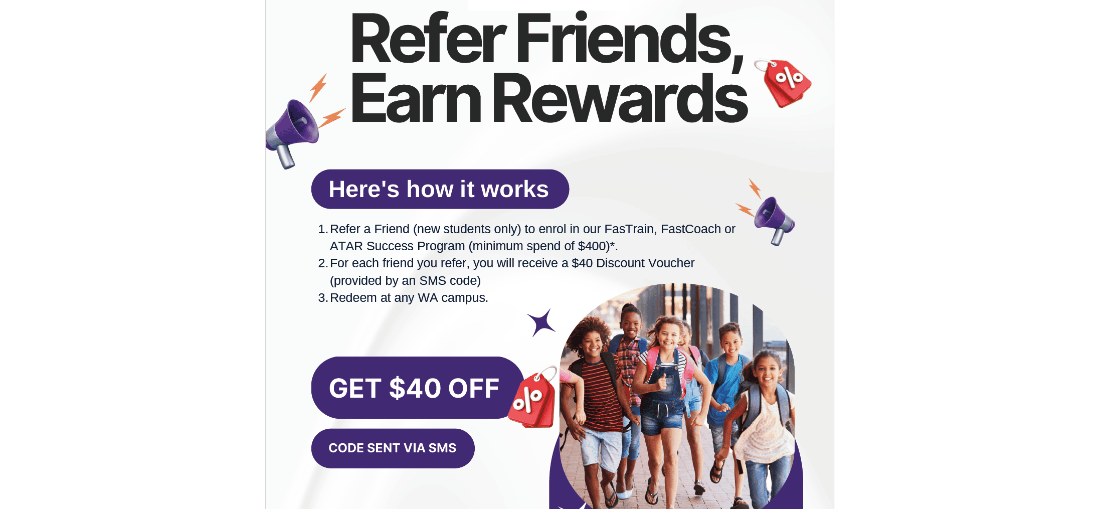 * The referred student must enrol in our term program with a minimum spend of $400. - Discount Voucher Redemption: